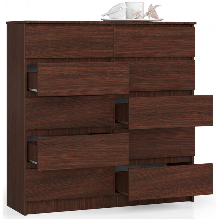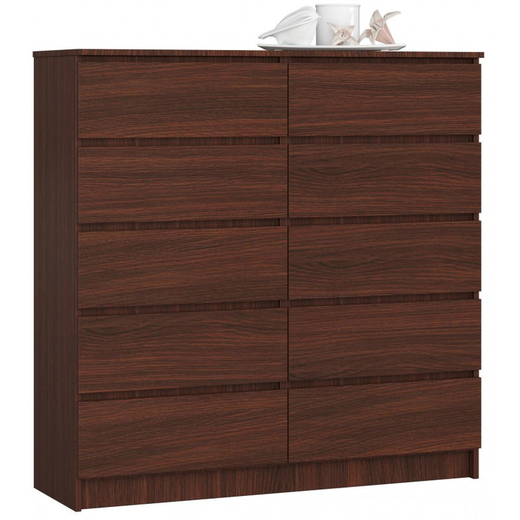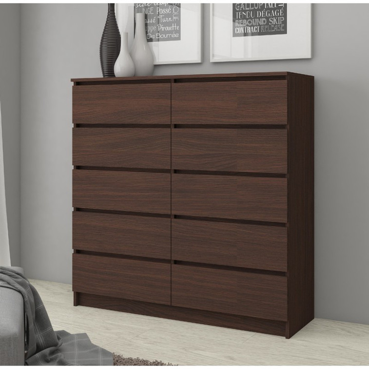 Jednoduchá a moderní komoda K120 10SZ. Je vyrobená z pevné laminované desky, která je odolná proti oděru a poškození. Univerzální vzhled splní očekávání každého, kdo ocení kombinaci jednoduchosti a elegance. Bezúchytková čela zásuvek zajišťují pohodlné používání.