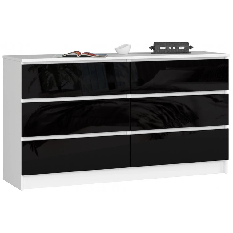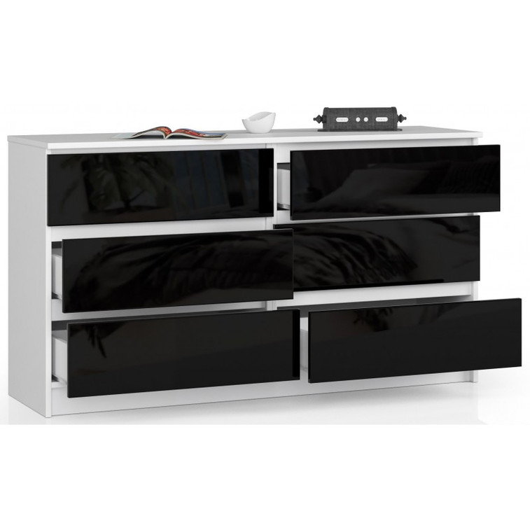 Komoda K120 6SZ CLP-lesklá černá/bílá.