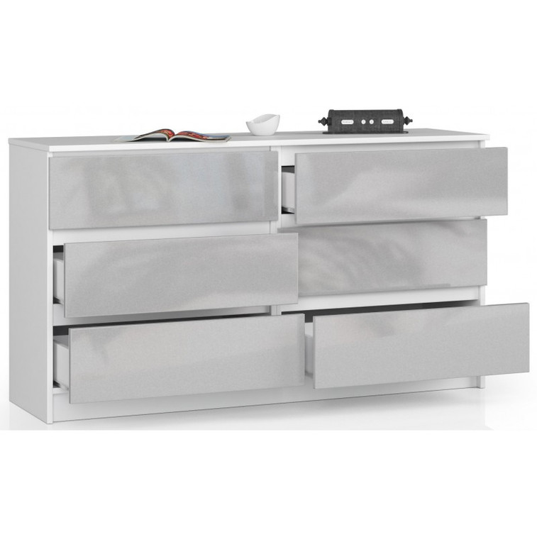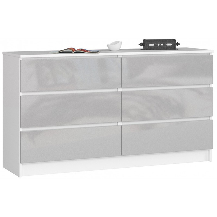 Jednoduchá a moderní komoda K120 6SZ CLP. Je vyrobená z pevné laminované desky, která je odolná proti oděru a poškození. Univerzální vzhled splní očekávání každého, kdo ocení kombinaci jednoduchosti a elegance.