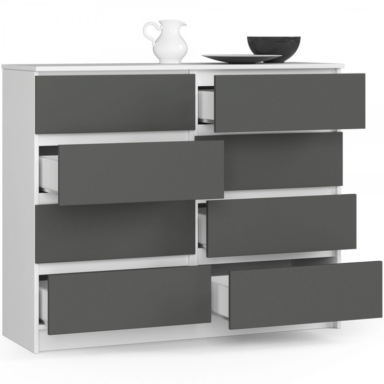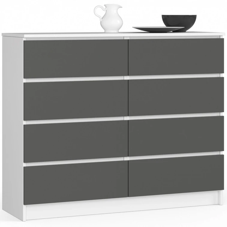 Komoda K120 8SZ. Kdo by nesnil o pevné, elegantní a funkční komodě. Jedná se o oblíbený kus nábytku, který v naší nabídce nemohl chybět. Nábytek vypadá vizuálně zajímavě, hodí se tak do obývacího pokoje, ložnice, obývacího pokoje nebo předsíně.