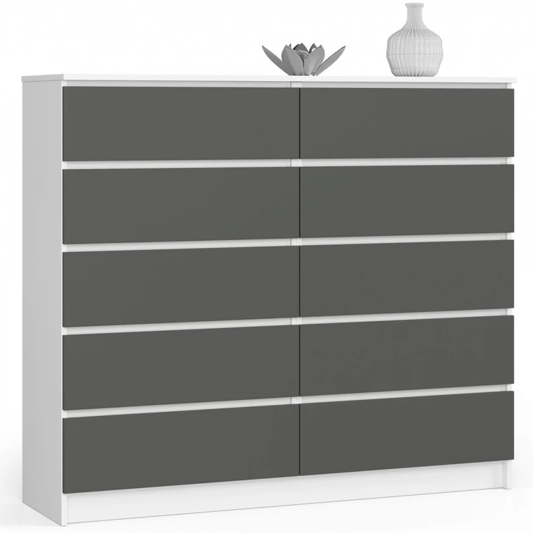 Komoda K140 10SZ. Kdo by nesnil o pevné, elegantní a funkční komodě. Jedná se o oblíbený kus nábytku, který v naší nabídce nemohl chybět. Nábytek vypadá vizuálně zajímavě, hodí se tak do obývacího pokoje, ložnice, obývacího pokoje nebo předsíně.