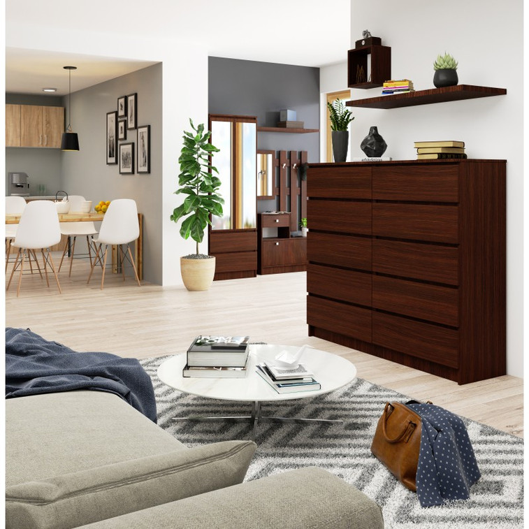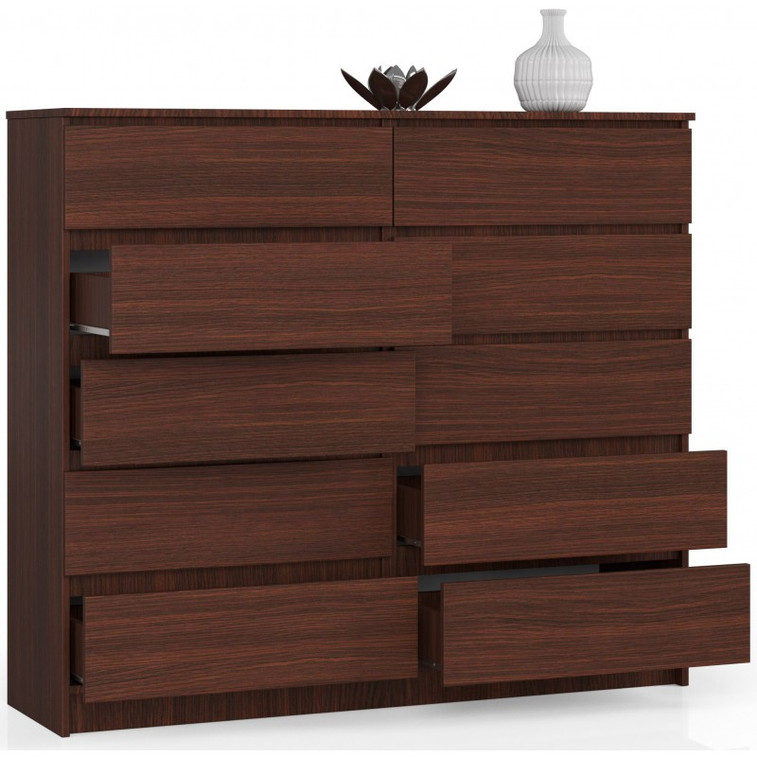 Jednoduchá a moderní komoda K140 10SZ. Je vyrobená z pevné laminované desky, která je odolná proti oděru a poškození. Univerzální vzhled splní očekávání každého, kdo ocení kombinaci jednoduchosti a elegance. Bezúchytková čela zásuvek zajišťují pohodlné používání.