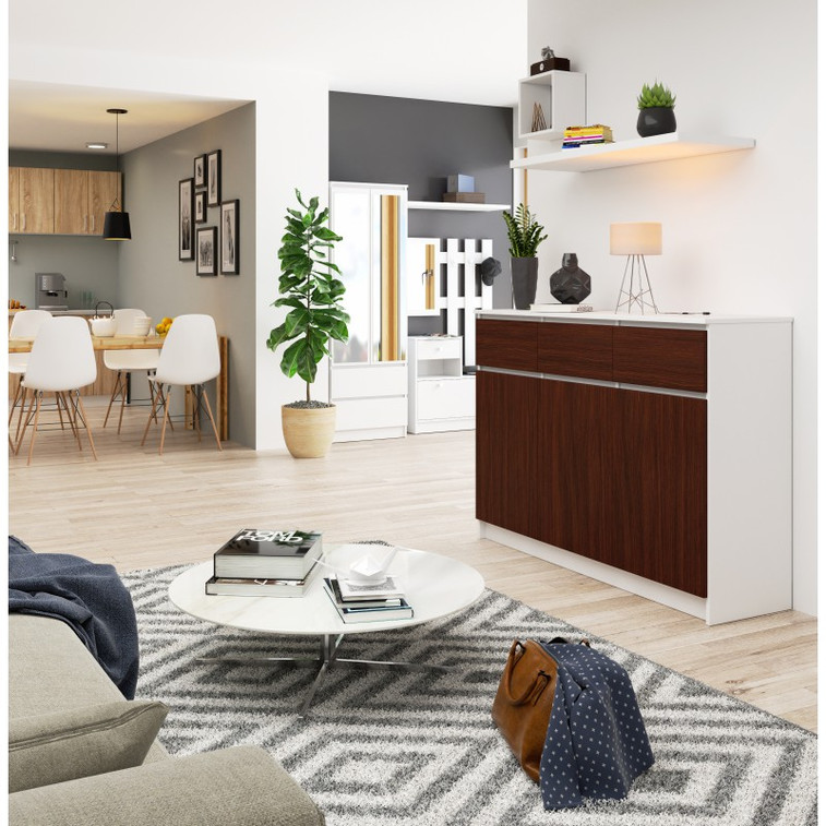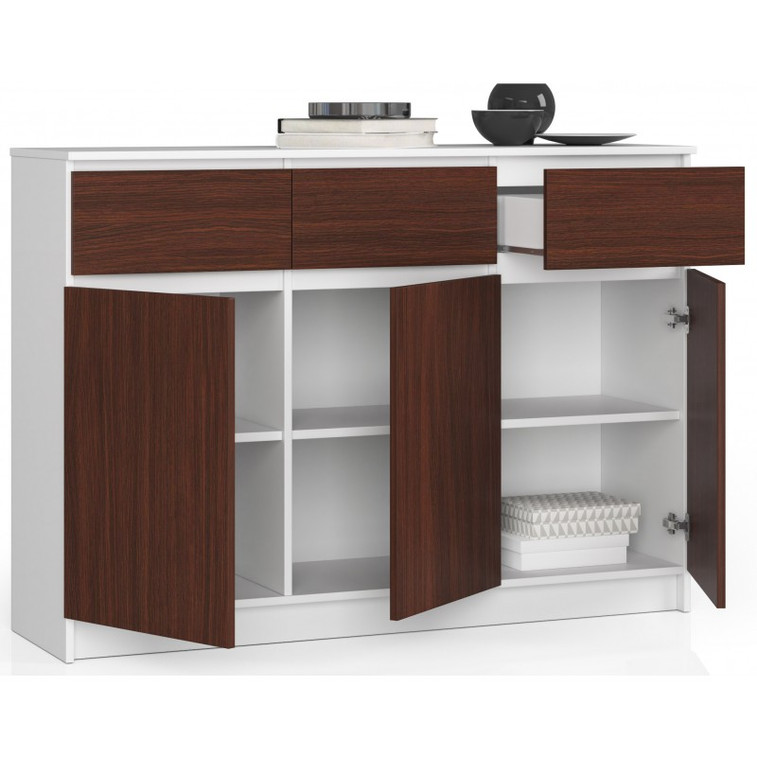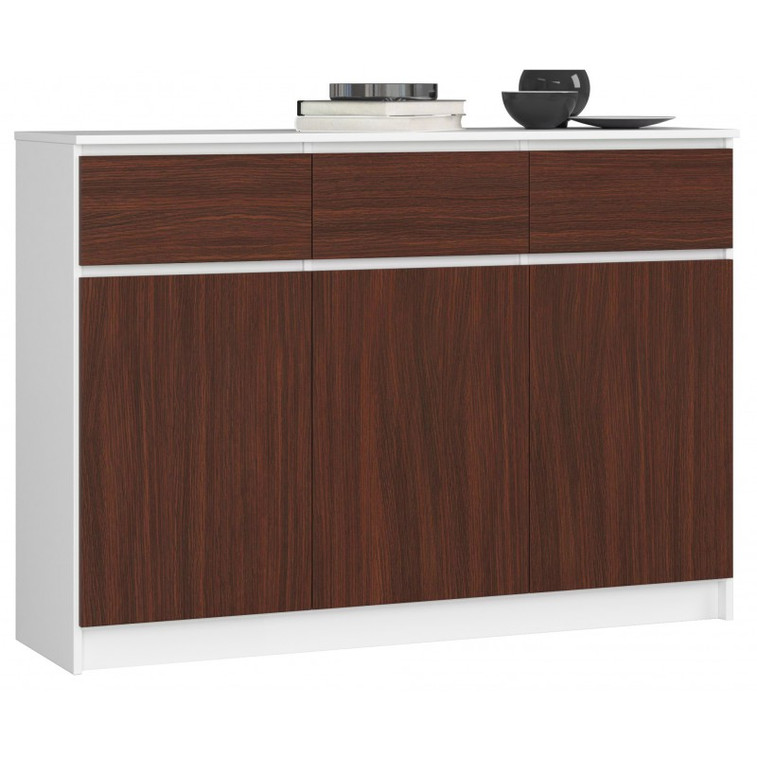 Jednoduchá a moderní komoda K140 3D3SZ. Je vyrobená z pevné laminované desky, která je odolná proti oděru a poškození. Univerzální vzhled splní očekávání každého, kdo ocení kombinaci jednoduchosti a elegance. Bezúchytková čela zásuvek zajišťují pohodlné používání.