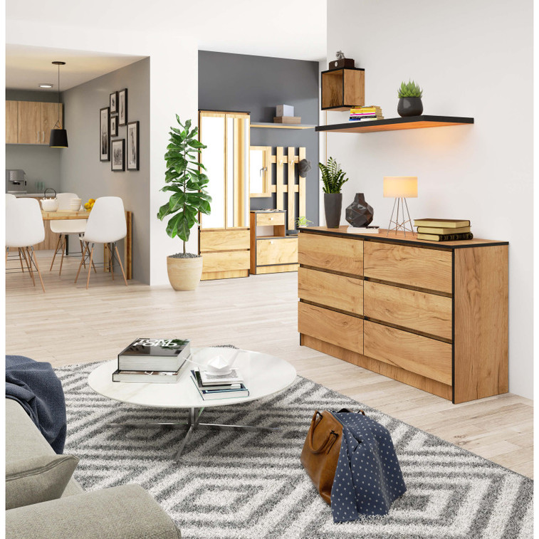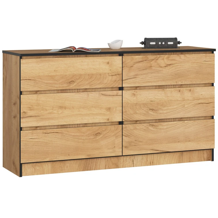 Jednoduchá a moderní komoda. Je vyrobená z pevné laminované desky, která je odolná proti oděru a poškození. Univerzální vzhled splní očekávání každého, kdo ocení kombinaci jednoduchosti a elegance. Bezúchytková čela zásuvek zajišťují pohodlné používání.