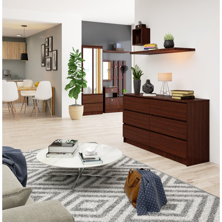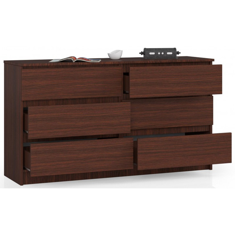 Jednoduchá a moderní komoda K140 6SZ. Je vyrobená z pevné laminované desky, která je odolná proti oděru a poškození. Univerzální vzhled splní očekávání každého, kdo ocení kombinaci jednoduchosti a elegance. Bezúchytková čela zásuvek zajišťují pohodlné používání.