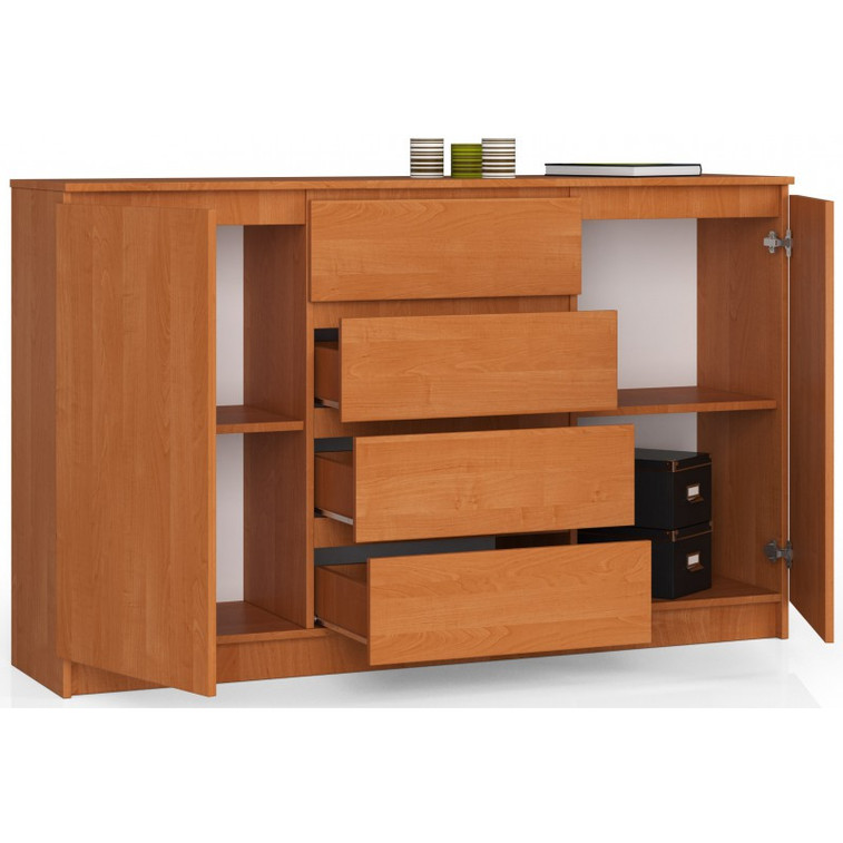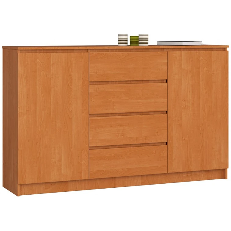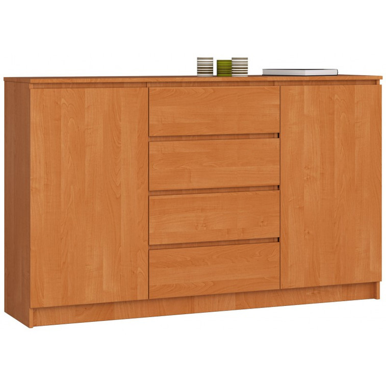 Jednoduchá a moderní komoda K160 2D4SZ. Je vyrobená z pevné laminované desky, která je odolná proti oděru a poškození. Univerzální vzhled splní očekávání každého, kdo ocení kombinaci jednoduchosti a elegance. Bezúchytková čela zásuvek zajišťují pohodlné používání.