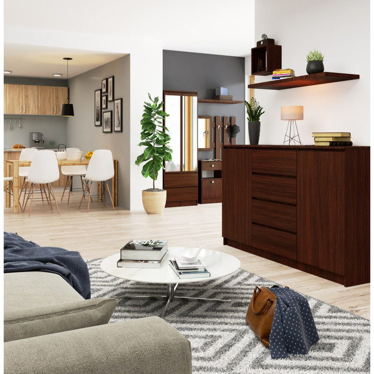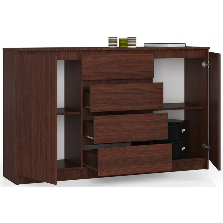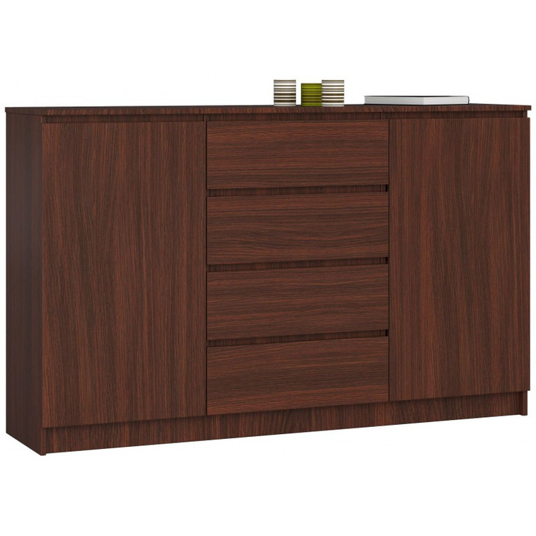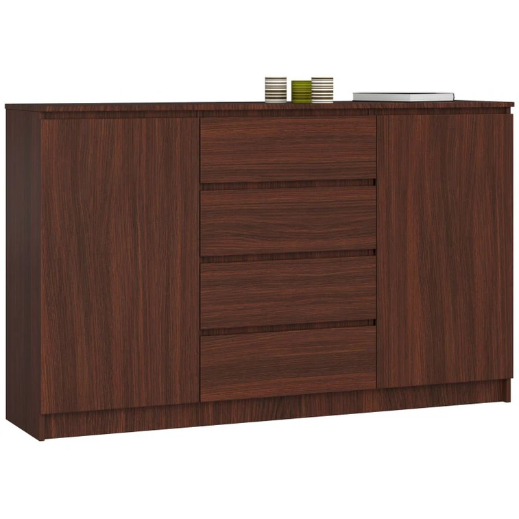 Jednoduchá a moderní komoda K160 2D4SZ. Je vyrobená z pevné laminované desky, která je odolná proti oděru a poškození. Univerzální vzhled splní očekávání každého, kdo ocení kombinaci jednoduchosti a elegance. Bezúchytková čela zásuvek zajišťují pohodlné používání.