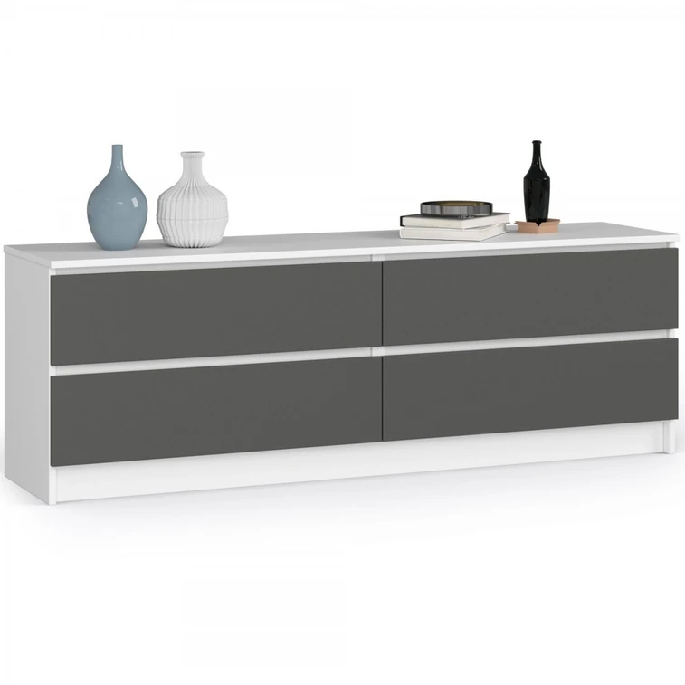 Komoda K160 4SZ. Kdo by nesnil o pevné, elegantní a funkční komodě. Jedná se o oblíbený kus nábytku, který v naší nabídce nemohl chybět. Nábytek vypadá vizuálně zajímavě, hodí se tak do obývacího pokoje, ložnice, obývacího pokoje nebo předsíně.