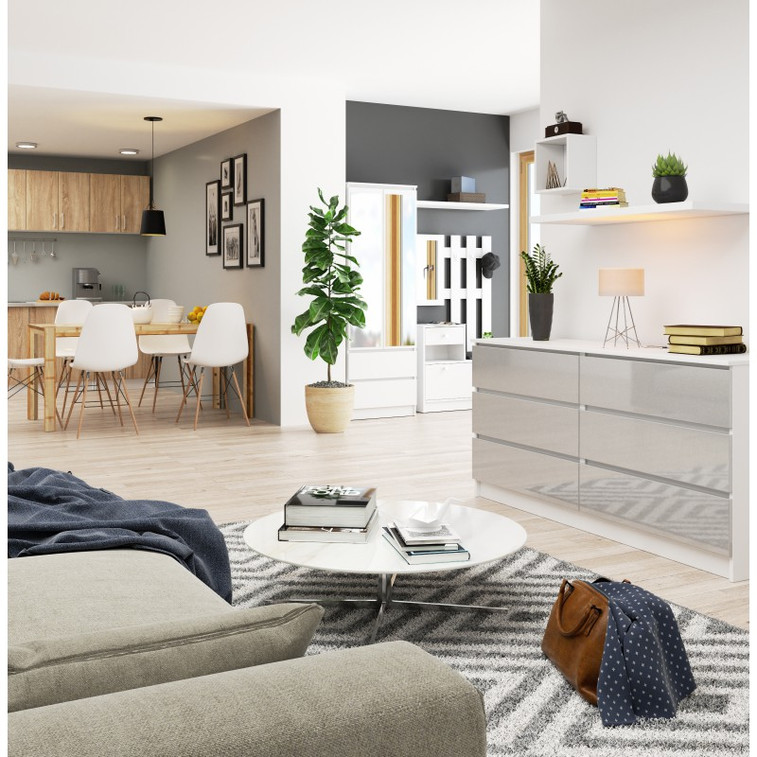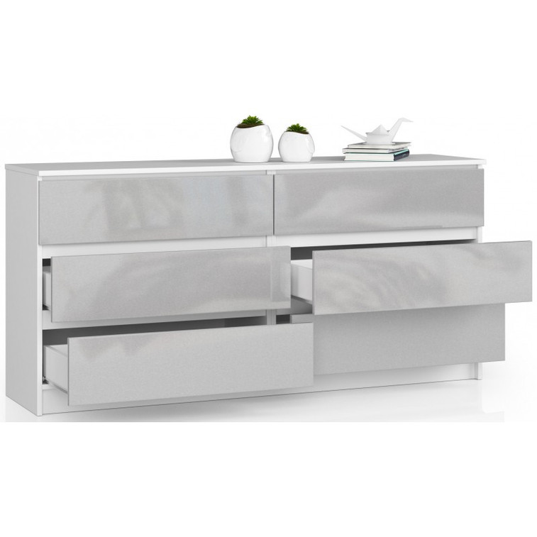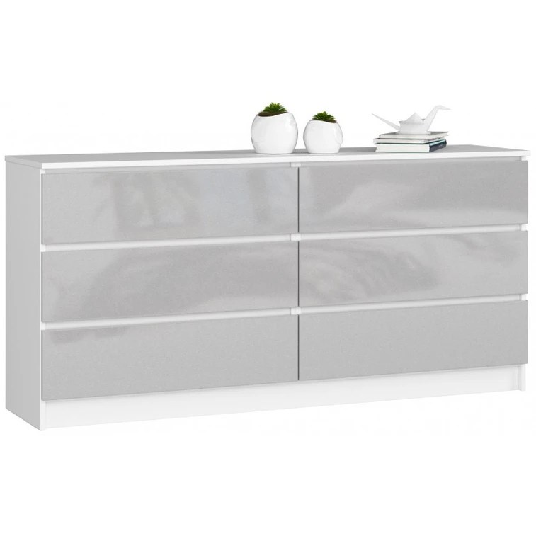 Jednoduchá a moderní komoda K160 6SZ. Je vyrobená z pevné laminované desky, která je odolná proti oděru a poškození. Univerzální vzhled splní očekávání každého, kdo ocení kombinaci jednoduchosti a elegance. Bezúchytková čela zásuvek zajišťují pohodlné používání.