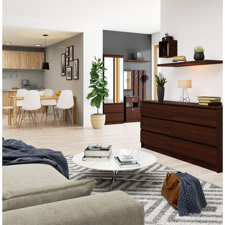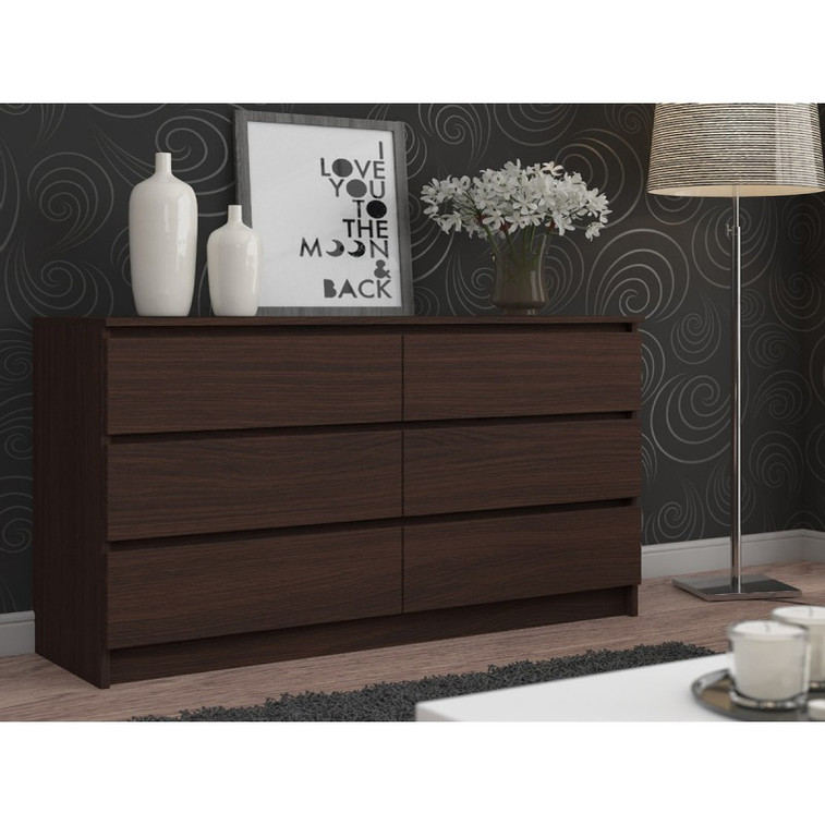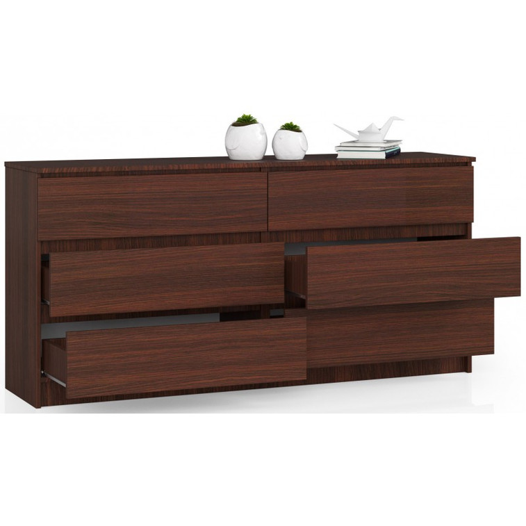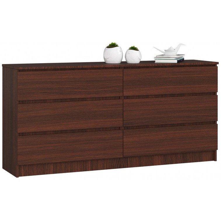 Jednoduchá a moderní komoda K160 6SZ. Je vyrobená z pevné laminované desky, která je odolná proti oděru a poškození. Univerzální vzhled splní očekávání každého, kdo ocení kombinaci jednoduchosti a elegance. Bezúchytková čela zásuvek zajišťují pohodlné používání.