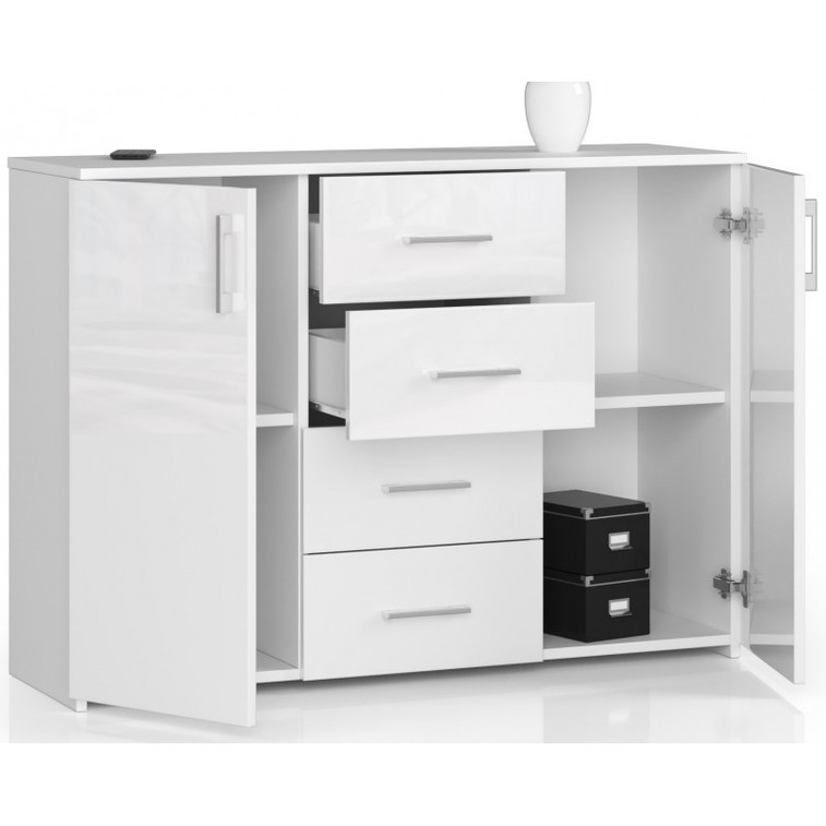 Jednoduchá a moderní komoda K45. Je vyrobená z pevné laminované desky, která je odolná proti oděru a poškození. Univerzální vzhled splní očekávání každého, kdo ocení kombinaci jednoduchosti a elegance.