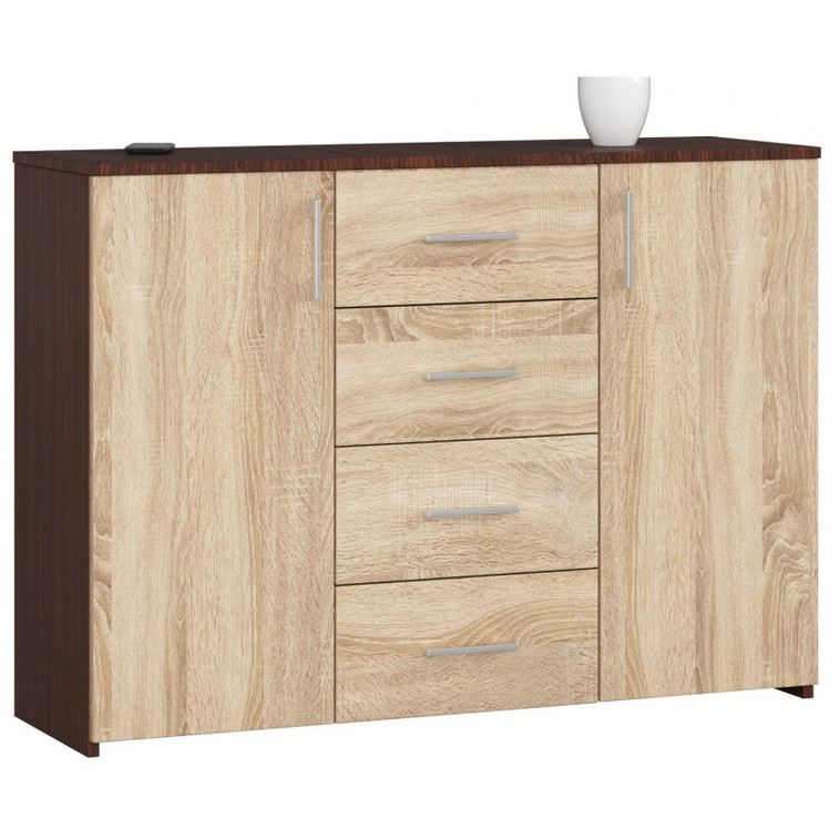 Jednoduchá a moderní komoda K45. Je vyrobená z pevné laminované desky, která je odolná proti oděru a poškození. Univerzální vzhled splní očekávání každého, kdo ocení kombinaci jednoduchosti a elegance.