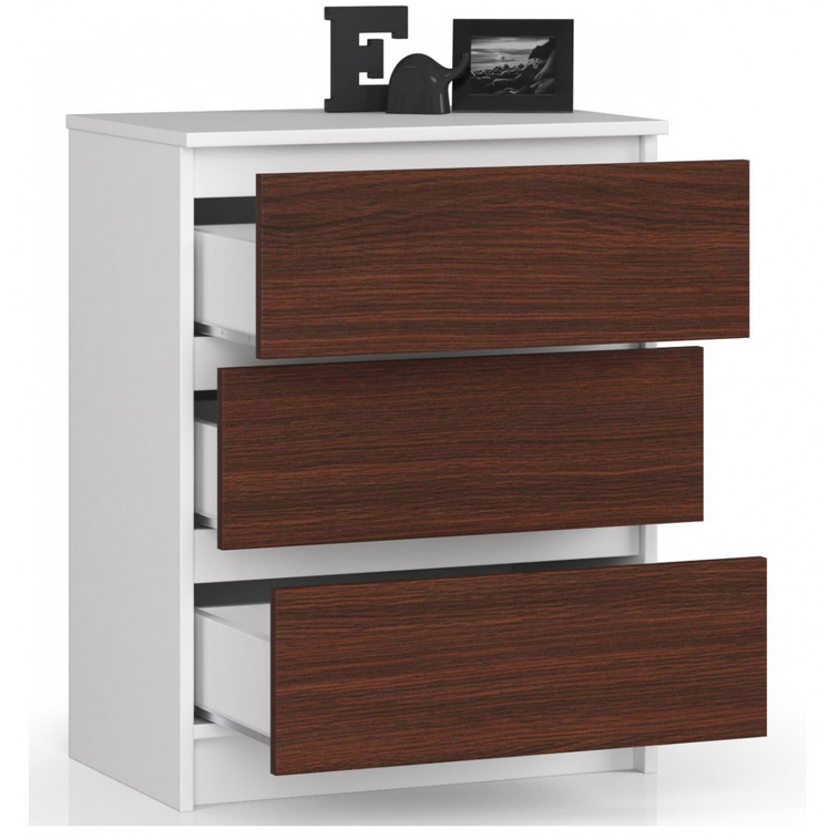 Komoda K60 3SZ. Kdo by nesnil o pevné, elegantní a funkční komodě. Jedná se o oblíbený kus nábytku, který v naší nabídce nemohl chybět. Nábytek vypadá vizuálně zajímavě, hodí se tak do obývacího pokoje, ložnice, obývacího pokoje nebo předsíně.
