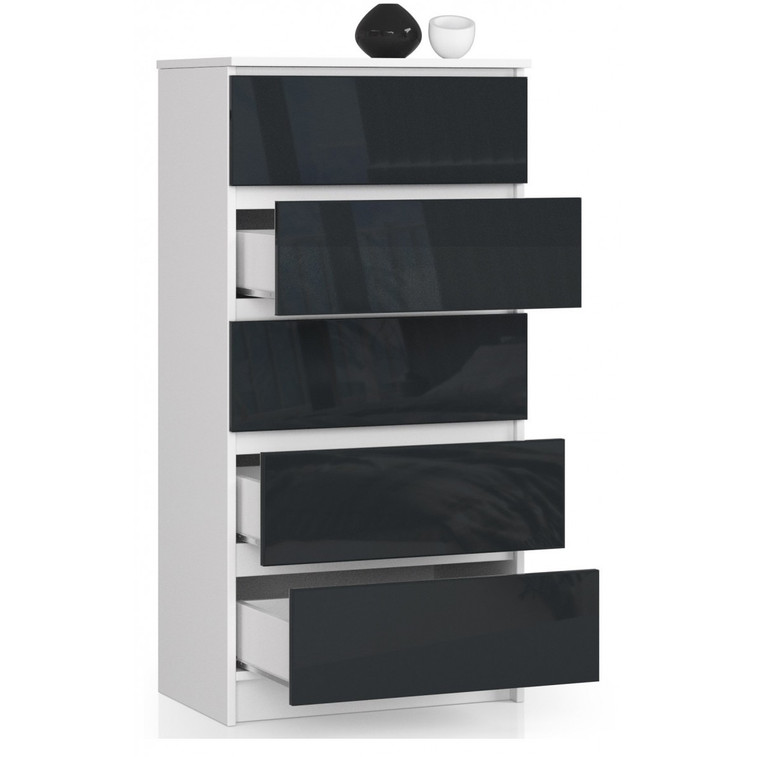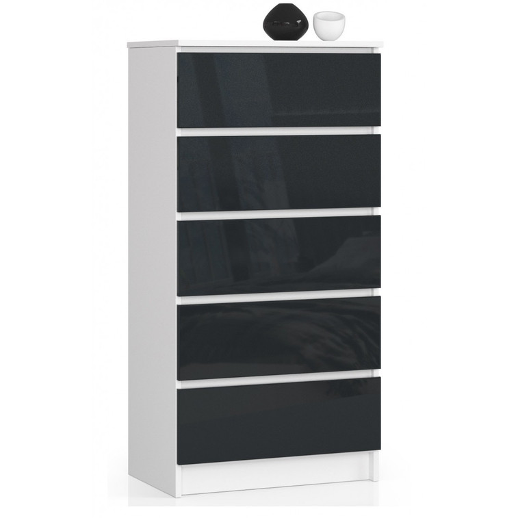 Komoda K60 5SZ. Kdo by nesnil o pevné, elegantní a funkční komodě. Jedná se o oblíbený kus nábytku, který v naší nabídce nemohl chybět. Nábytek vypadá vizuálně zajímavě, hodí se tak do obývacího pokoje, ložnice, obývacího pokoje nebo předsíně.
