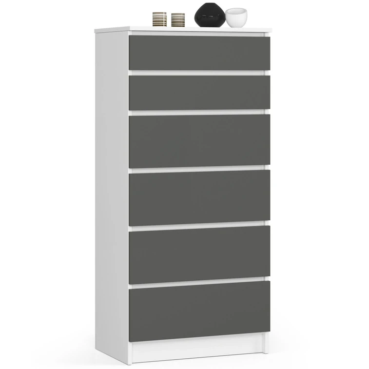 Komoda K60 6SZ. Kdo by nesnil o pevné, elegantní a funkční komodě. Jedná se o oblíbený kus nábytku, který v naší nabídce nemohl chybět. Nábytek vypadá vizuálně zajímavě, hodí se tak do obývacího pokoje, ložnice, obývacího pokoje nebo předsíně.