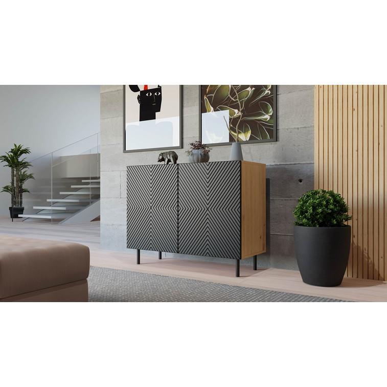 Moderní a stylová komoda Kama je funkční a prostorná. Hitem a novinkou jsou drážkovaná čela dveří, která jsou velmi žádaná.