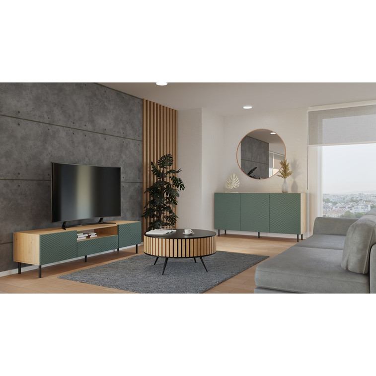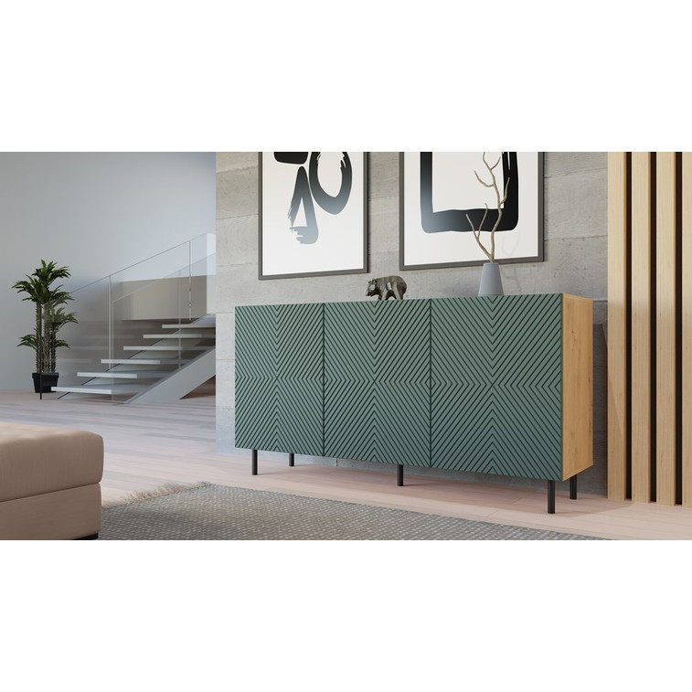 Komoda Kama 3D/K - dub artisan/zelená.