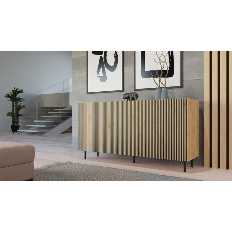 Moderní a stylová komoda Kama je funkční a prostorná. Hitem a novinkou jsou drážkovaná čela dveří, která jsou velmi žádaná.