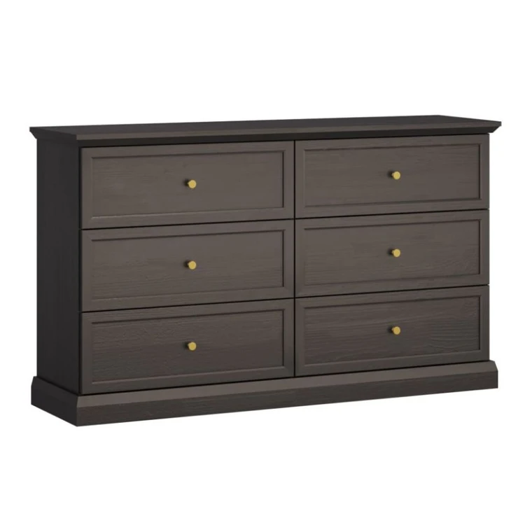 Praktická komoda se šesti prostornými zásuvkami. Černohnědý nebo bílý dekor s hlubokými přírodními póry dřeva má různé stupně lesku a působí mimořádně dynamicky a velmi rozmanitě. Kolekce Lucca vám umožňuje volně míchat klasický a moderní styl.