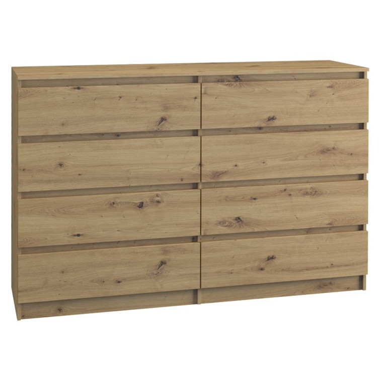 Komoda Malva má moderní vzhled a díky 8 šuplíkům do ní uskladníte velké množství věcí jako je oblečení, hračky pro děti nebo nářadí. Skvěle pasuje do domácnosti, ale své místo nalezne i v pracovních podmínkách.
