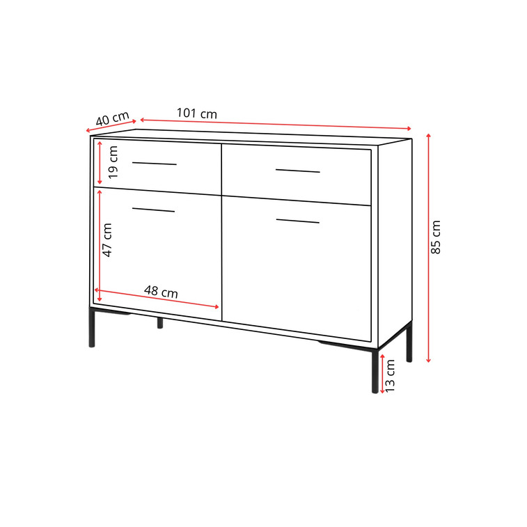 Kvalitní zpracování a pevná konstrukce zaručují dlouhou životnost i při každodenním používání. Komoda 2S2D je tak skvělou volbou do obývacího pokoje, ložnice i předsíně, kde oceníte její praktičnost i elegantní vzhled.