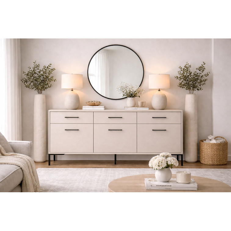 Díky svému nadčasovému designu se snadno začlení do moderních i klasických prostor. Horní plocha komody je ideální pro vystavení dekorací, fotografií nebo květin, které dodají místnosti osobitý charakter.