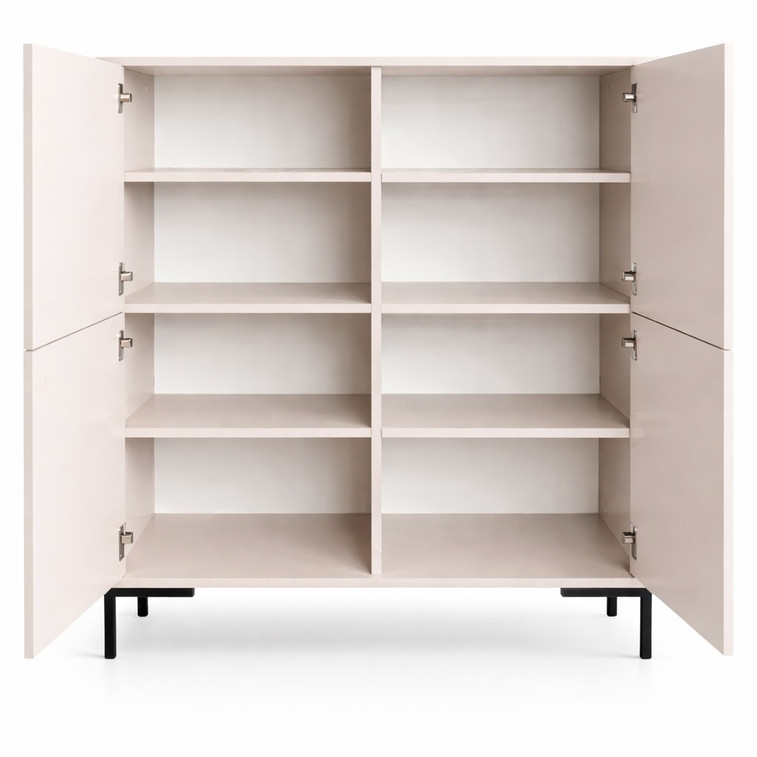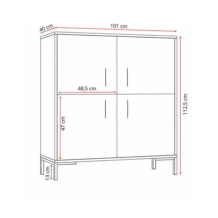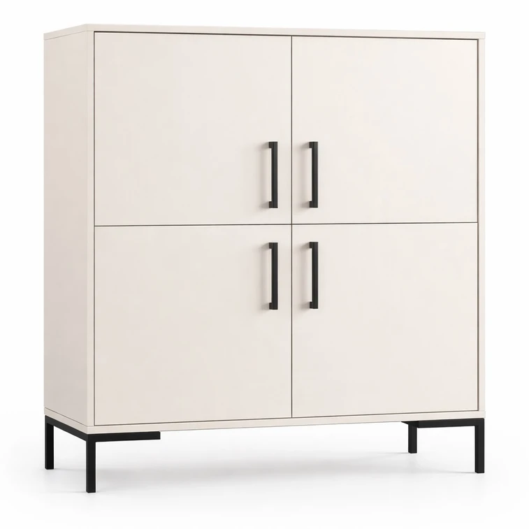 Stylová a praktická komoda na nožičkách 4D nabízí dostatek úložného prostoru i elegantní vzhled, který skvěle doplní obývací pokoj, ložnici i předsíň. Díky čtyřem dvířkům poskytuje přehledné místo pro uložení všeho, co chcete mít po ruce, ale zároveň uklizené. Vyvýšené nožičky dodávají komodě lehkost, moderní charakter a usnadňují údržbu pod nábytkem. Komoda je ideální volbou pro každého, kdo hledá spojení funkčnosti, jednoduchého designu a praktičnosti do každodenního používání.