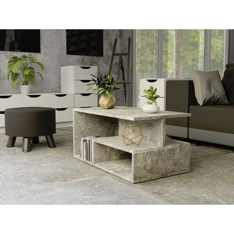 Moderní konferenční stolek Prima do obývacího pokoje. Stolek je vyroben z laminované desky s vysokou tvrdostí a odolností proti poškrábání. Dveře odkládací přihrádky bez madla lze snadno otevřít lehkým zatlačením. Chcete-li je zavřít, stačí lehce stisknout přední část.