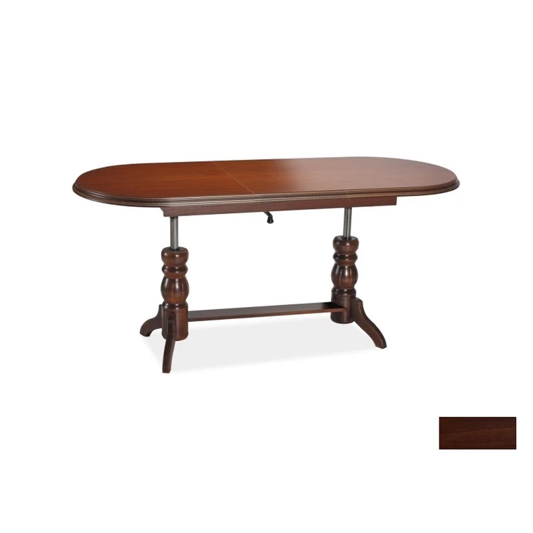 Elegantní konferenční stůl s funkcí jídelního stolu v rustikálním duchu. Zajímavý vzhled stolu vyzdvihují jemné tvary a dokonalé detaily. Výhodou tohoto stolu je nastavitelná výška, kdy po zvýšení a rozkladu desky je možno použít stůl ke stolování. Nohy jsou vyrobeny z kvalitního přírodního dřeva, deska z LTD.