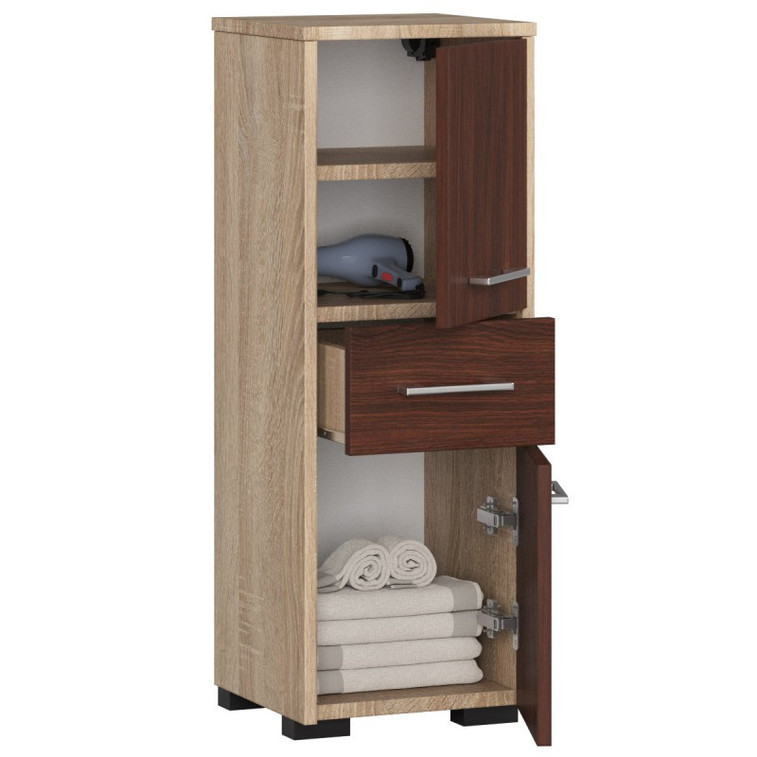 Splní očekávání všech těch, kteří mají rádi kombinaci jednoduchosti a elegance. Minimalistické rukojeti zajišťují pohodlný přístup k obsahu skříňky. Koupelnová skříňka nezabere moc prostoru a pomůže vám věci v koupelně zorganizovat.