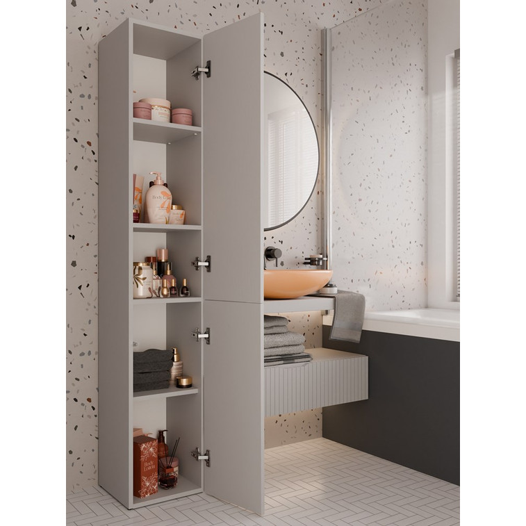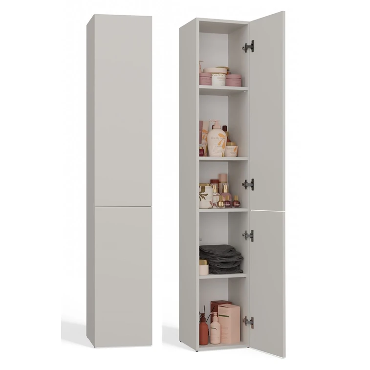 V každé koupelně se najdou věci, které potřebují svůj prostor. Koupelnová skříňka nezabere moc prostoru a pomůže vám věci v koupelně zorganizovat. Univerzální design splňuje očekávání všech těch, kteří mají rádi kombinaci jednoduchosti a elegance. Bezúchytková čela dvířek zajišťují pohodlné používání - systém TIP-ON otvírá se jemným zatlačením na čelo dvířek.