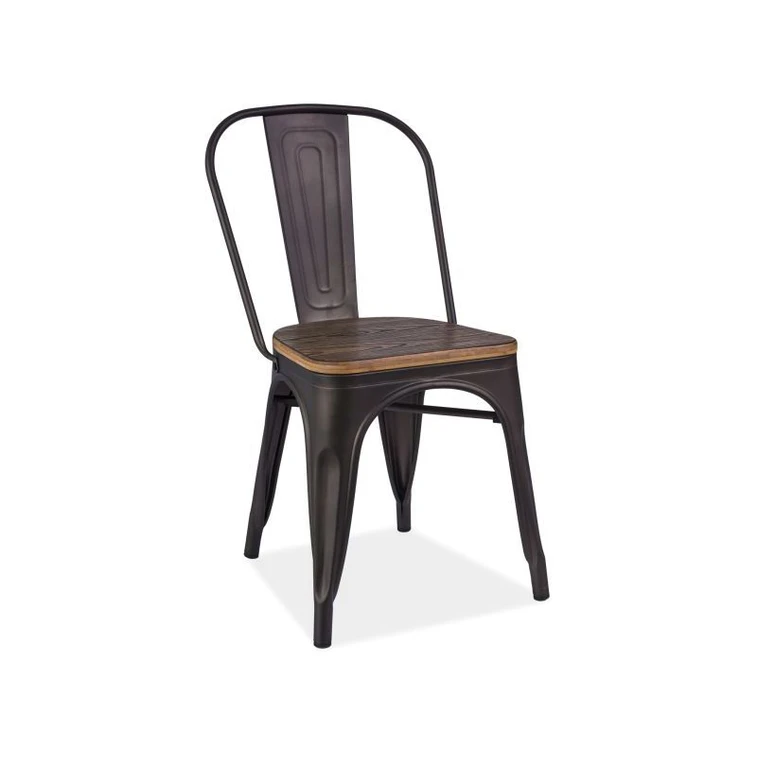 Moderní jídelní židle v industriálním stylu. Zajímavý vzhled vyzdvihují jemné tvary a dokonalé detaily. Konstrukce je vyrobena z kovu, sedák z kvalitního dřeva v barvě tmavý ořech. Pohodlí a elegance pro každý interiér.