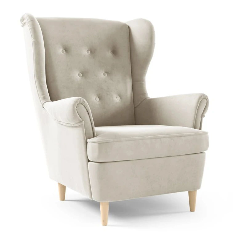 Pohodlné, kompaktní křeslo 190 Victoria, nohy jsou světlé bukové.