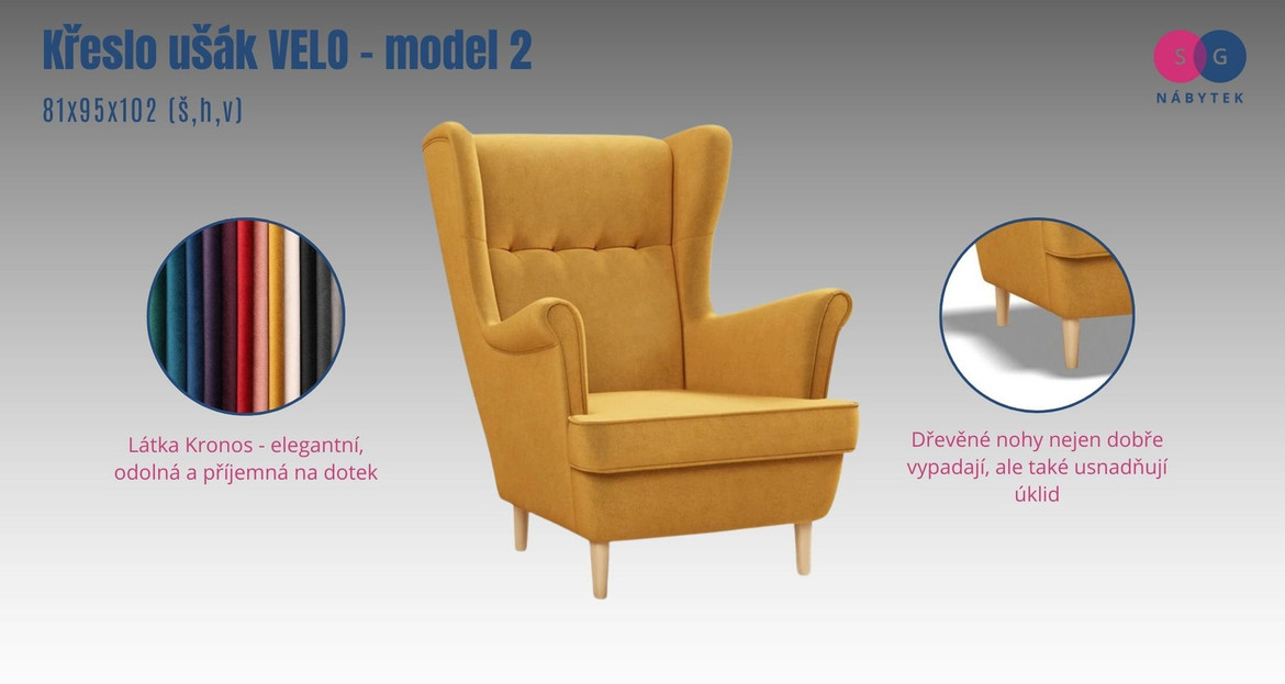 Křeslo ušák VELO - model 2