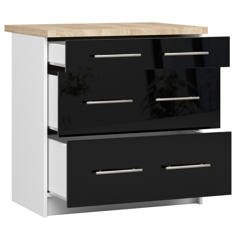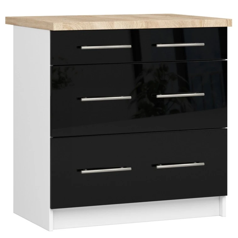 Kuchyňská skříňka OLIVIA S80 3SZ - bílá/černý lesk.