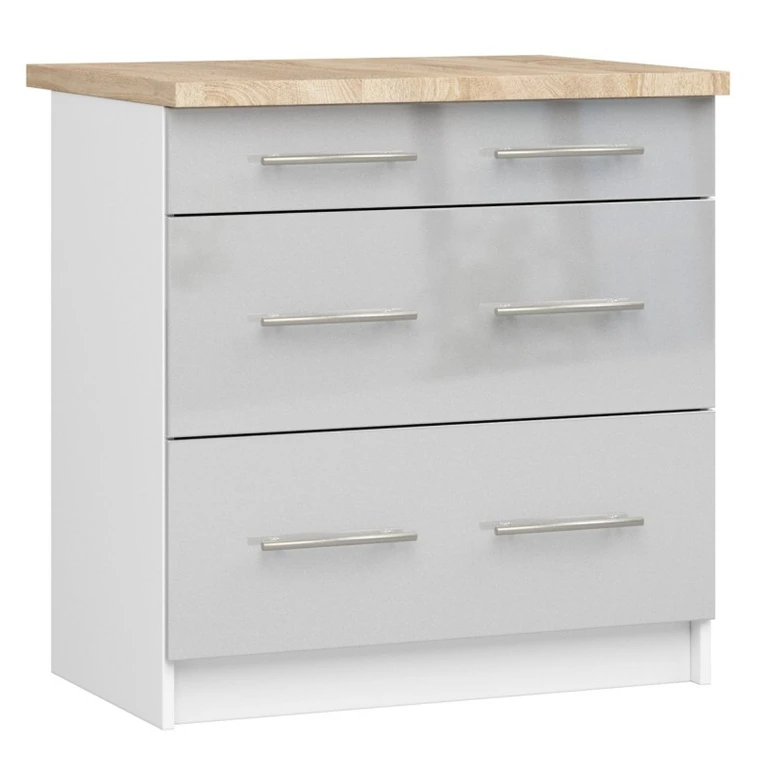 Kuchyňská skříňka OLIVIA S80 3SZ - bílá/šedý lesk.