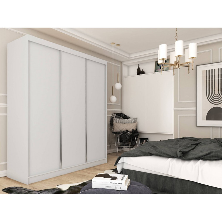 Posuvná šatní skříň bez zrcadla 180 cm je vyrobena v moderním designu a nabízí velké množství praktického úložného prostoru.