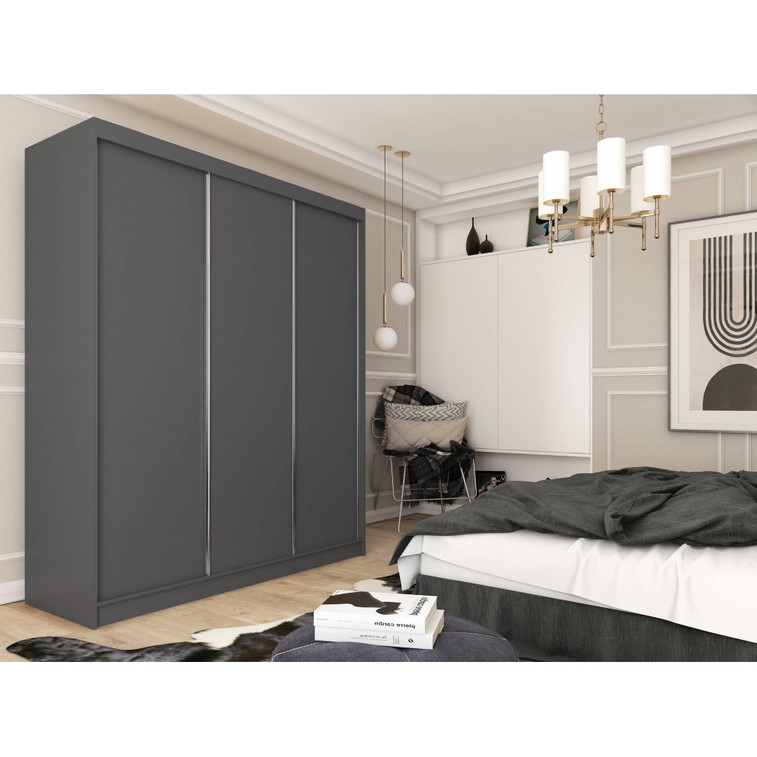 Posuvná šatní skříň bez zrcadla 180 cm je vyrobena v moderním designu a nabízí velké množství praktického úložného prostoru.