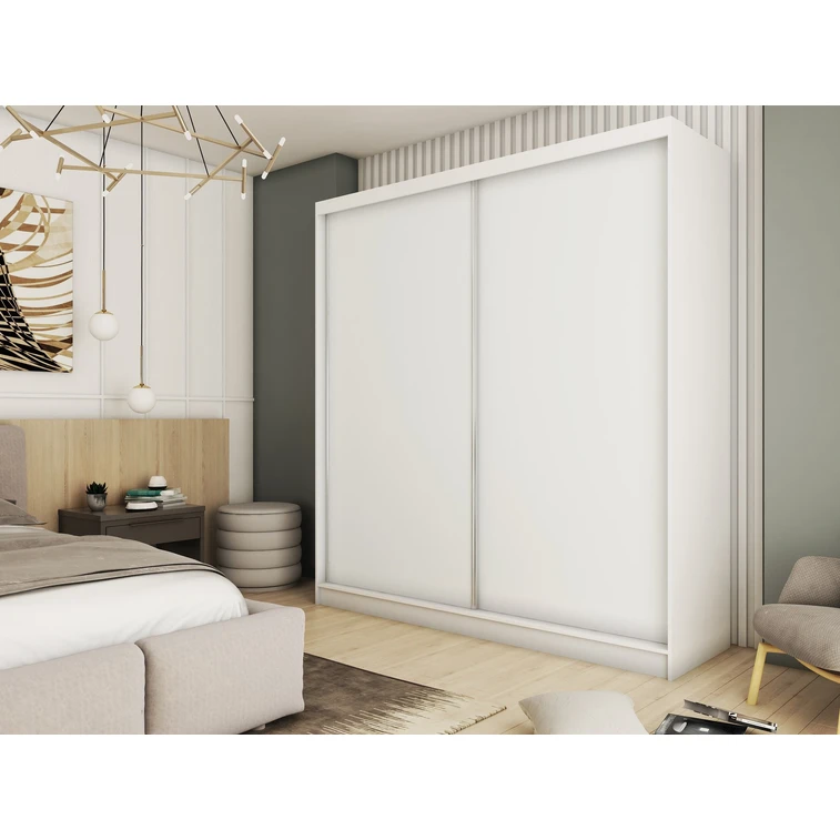 Posuvná šatní skříň bez zrcadla 200 cm je vyrobena v moderním designu a nabízí velké množství praktického úložného prostoru.