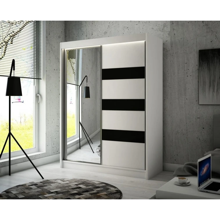 Kvalitní Šatní Skříň Lotse 200 cm Bílý Mat Černá