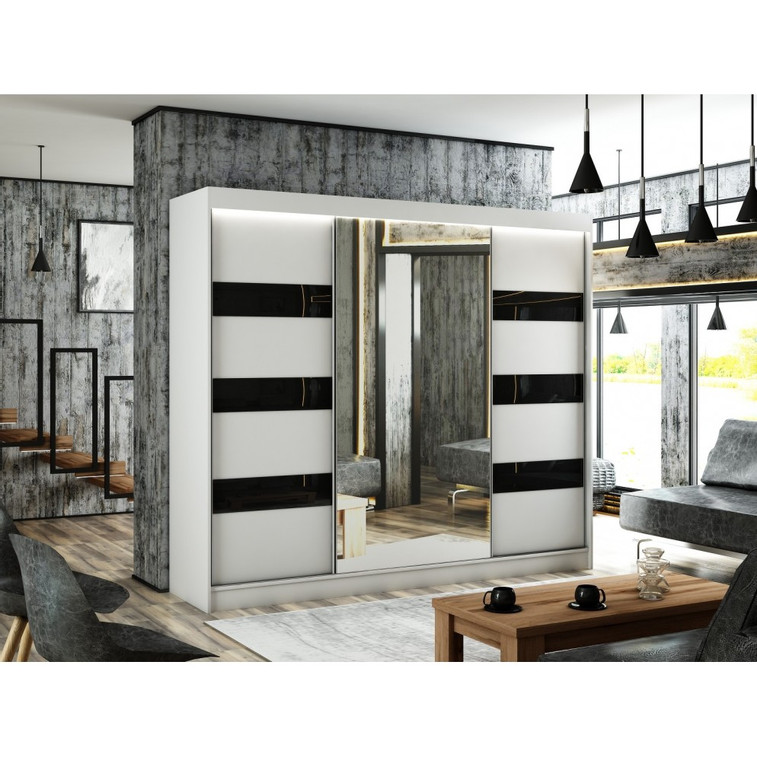 Kvalitní Šatní Skříň Lotse 250 cm Bílý Mat Černá