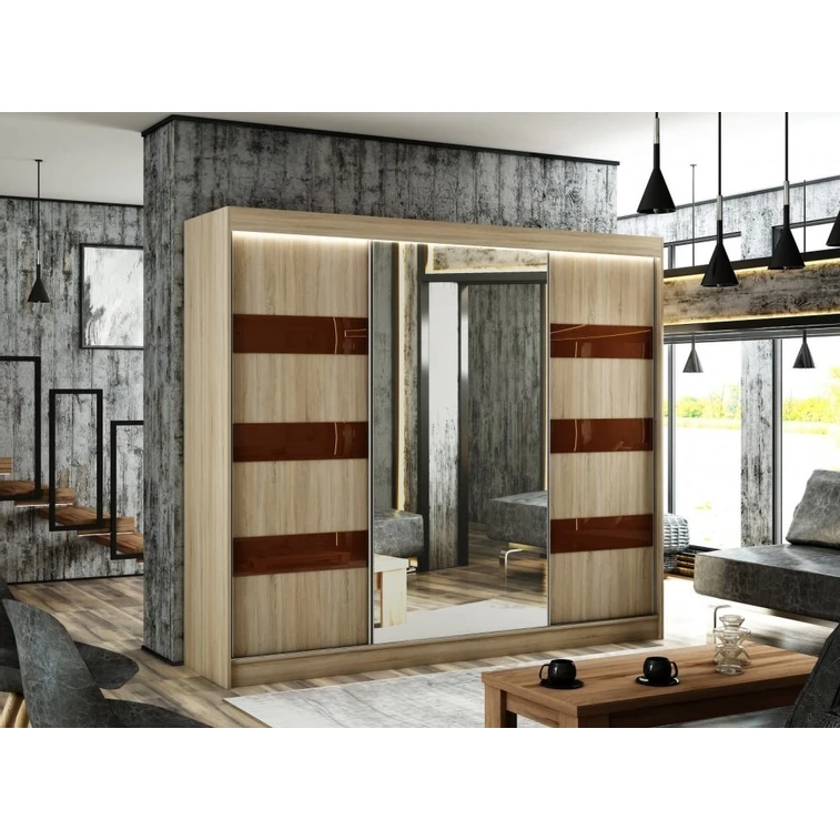 Posuvná šatní skříň je vyrobena v moderním designu a nabízí velké množství praktického úložného prostoru.