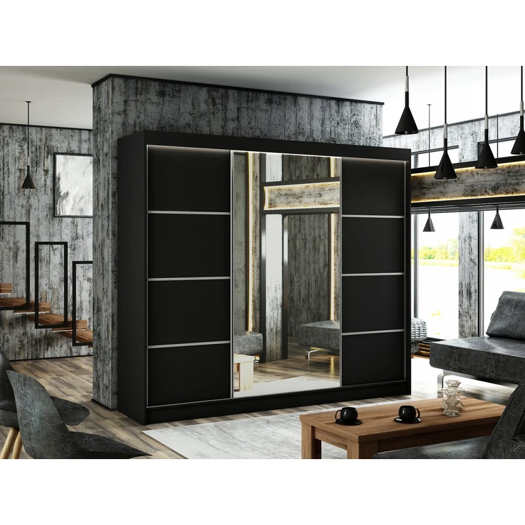 Šatní skříň Pako je vyrobena v moderním designu a nabízí velké množství praktického úložného prostoru. Neocenitelný je systém trendových posuvných dveří, které usnadňují manipulaci a šetří prostor v interiéru.