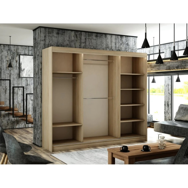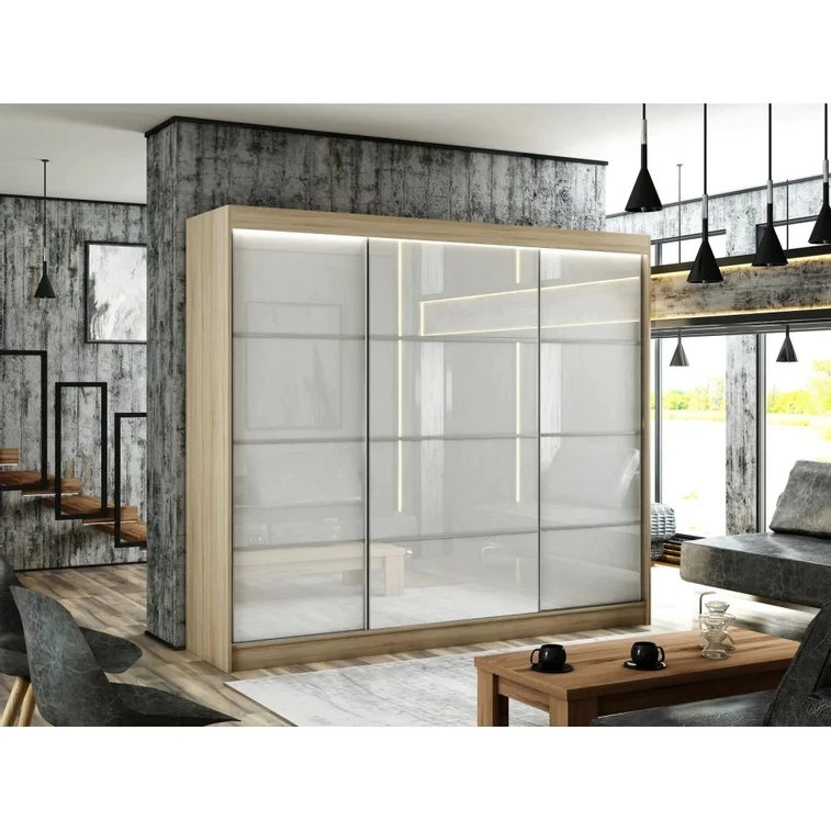 Šatní skříň Peak III je vyrobena v moderním designu a nabízí velké množství praktického úložného prostoru. Neocenitelný je systém trendových posuvných dveří, které usnadňují manipulaci a šetří prostor v interiéru.