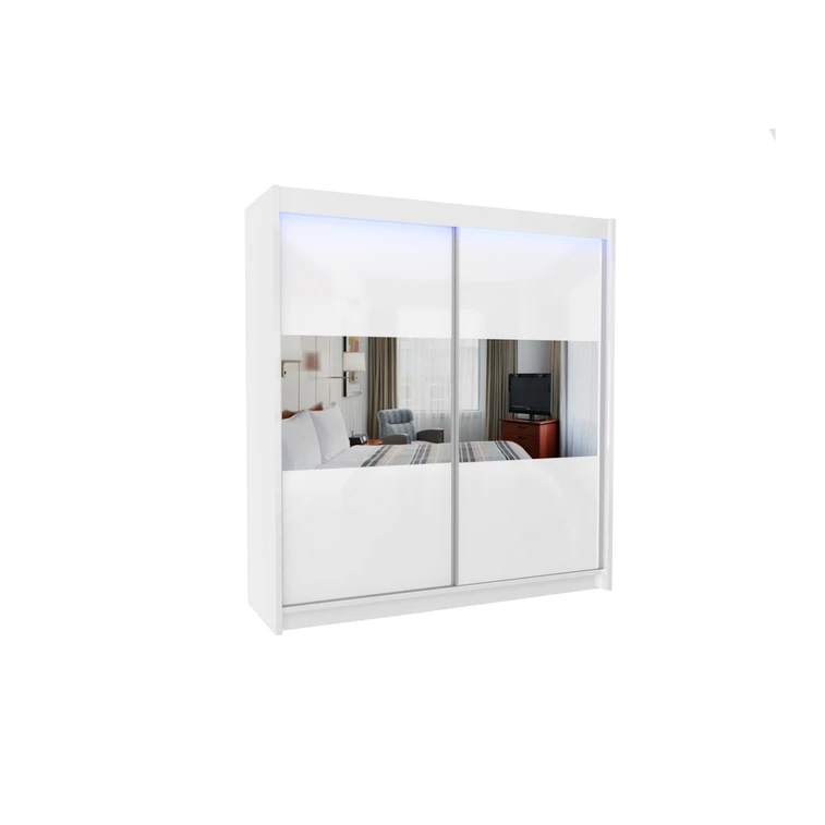 Šatní skříň Rosana je vyrobena v moderním designu a nabízí velké množství praktického úložného prostoru. Neocenitelný je systém trendových posuvných dveří, které usnadňují manipulaci a šetří prostor v interiéru.