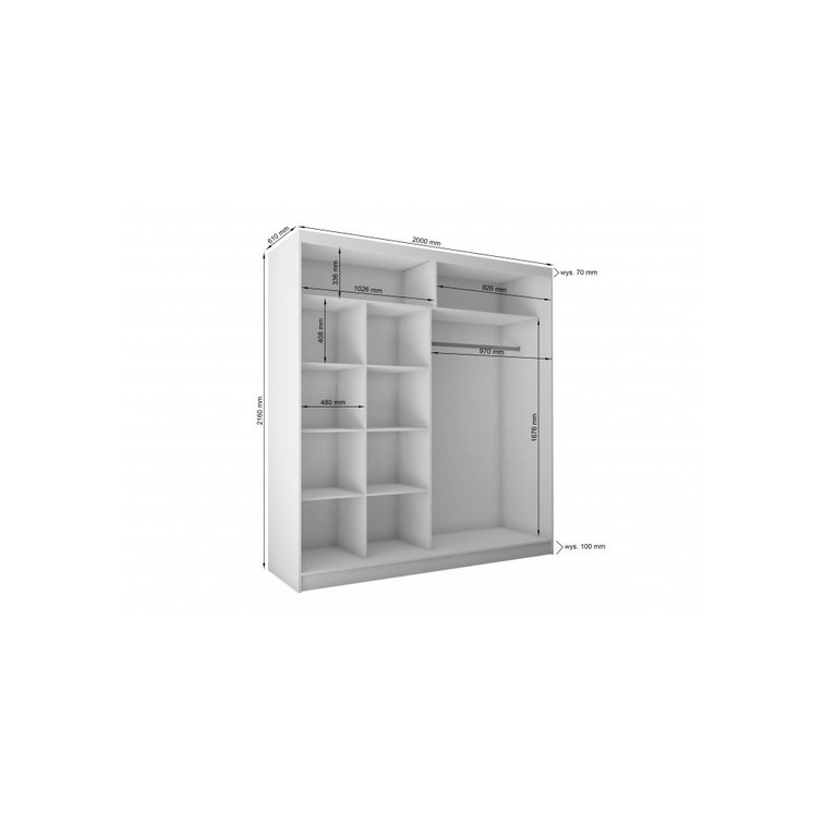 Posuvná šatní skříň Tanna 200 je vyrobena v moderním designu a nabízí velké množství praktického úložného prostoru.