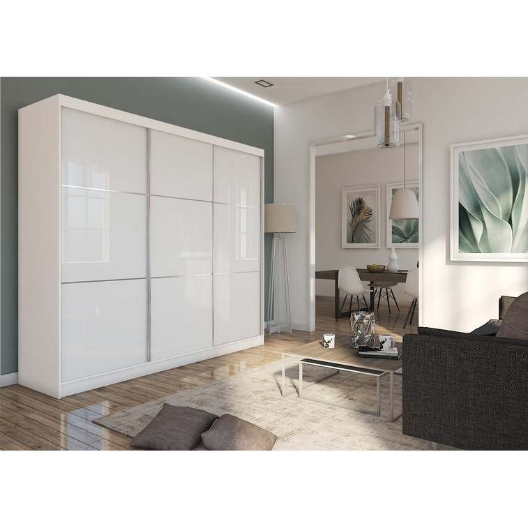 Šatní skříň Viviana je vyrobena v moderním designu a nabízí velké množství praktického úložného prostoru. Neocenitelný je systém trendových posuvných dveří, které usnadňují manipulaci a šetří prostor v interiéru.