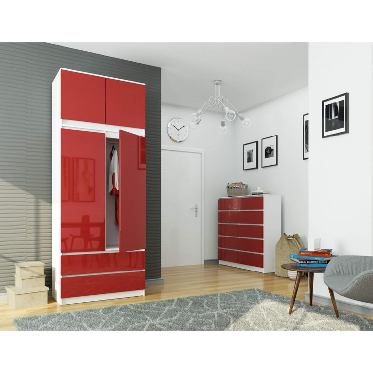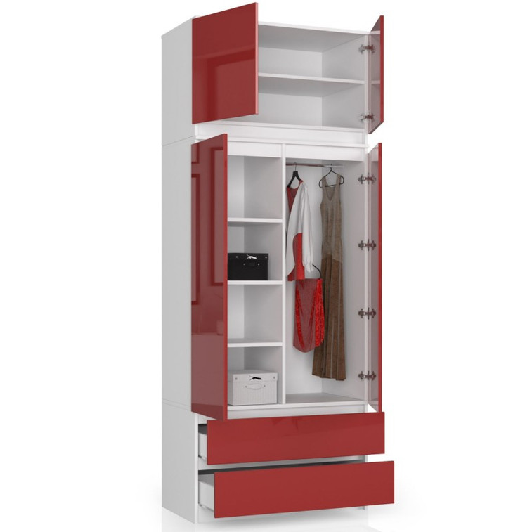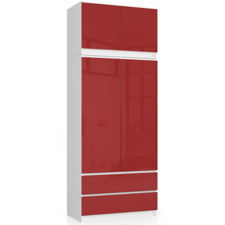 Nástavba na skříň S90 2D 2SZ - bílá/červený lesk.