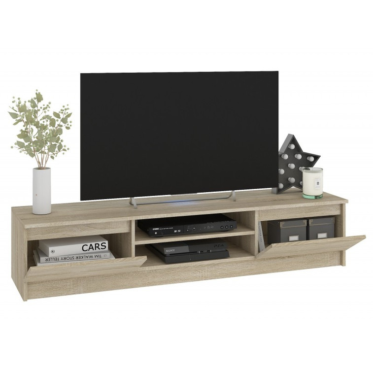 Televizní stolek má velkou pracovní desku, na kterou můžete umístit libovolnou velikost televizoru a dekorativní prvky.