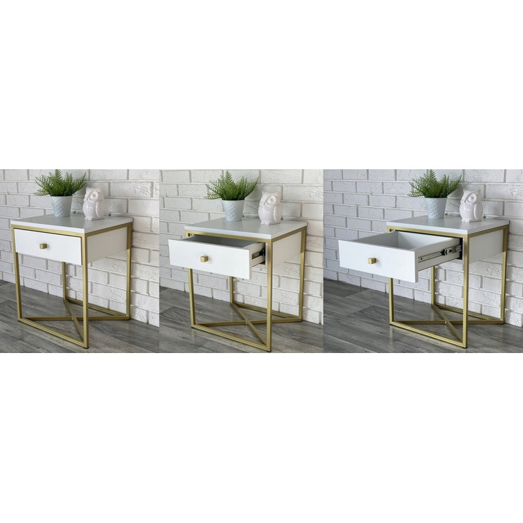 Kvalitní a moderní noční stolek Golden II. Jedinečný design je sklouben s vysokou funkčností, takže se nemusíte bát, že váš nový nábytek bude pouze na ozdobu.
